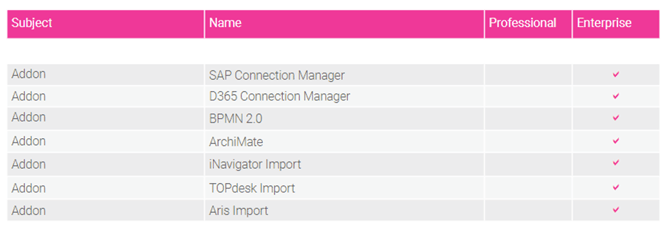 - Enterprise-licenties hebben geen limiet op add-ons of functionaliteiten.