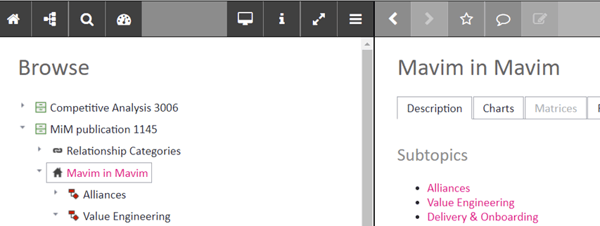 Als de boom in het linker venster staat en de omschrijving in het rechter venster, en de link wordt aangemaakt