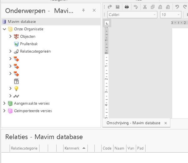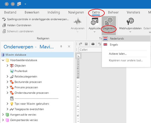 Wanneer alle onderwerpen zonder naam worden getoond, komt dit doordat de onderwerpen in een andere datataal zijn aangemaakt dan de taal die momenteel actief is in uw Mavim-instellingen.