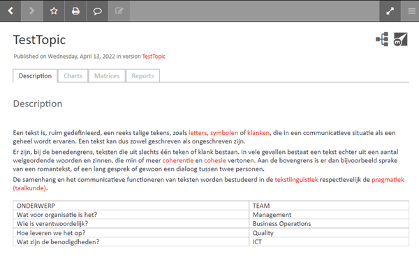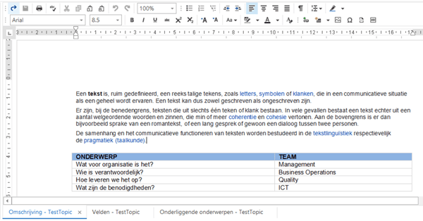 In Mavim Manager staat de tabel netjes onder de tekst, maar in de Portal is deze niet goed uitgelijnd.