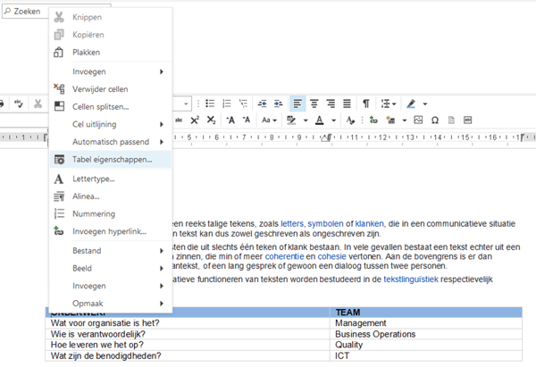 - Kies Tabel eigenschappen.