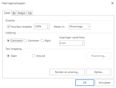 - Deze wijziging geldt per tabel; herhaal dit voor alle tabellen die niet goed uitgelijnd zijn.