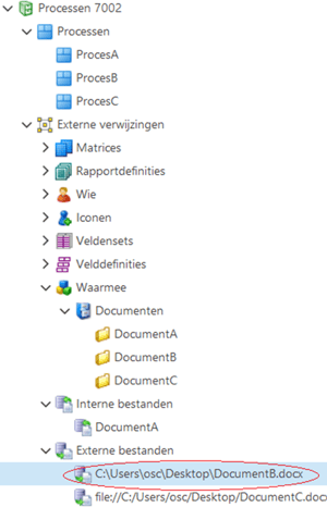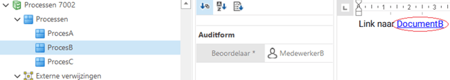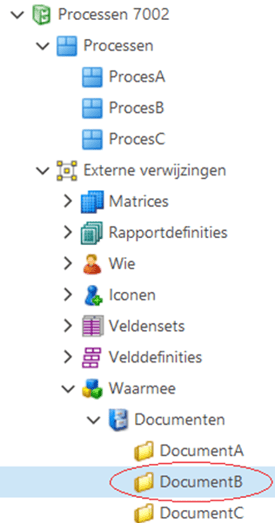DocumentB komt voor bij ProcesA, ProcesB en ProcesC (in omschrijvingen of velden).
